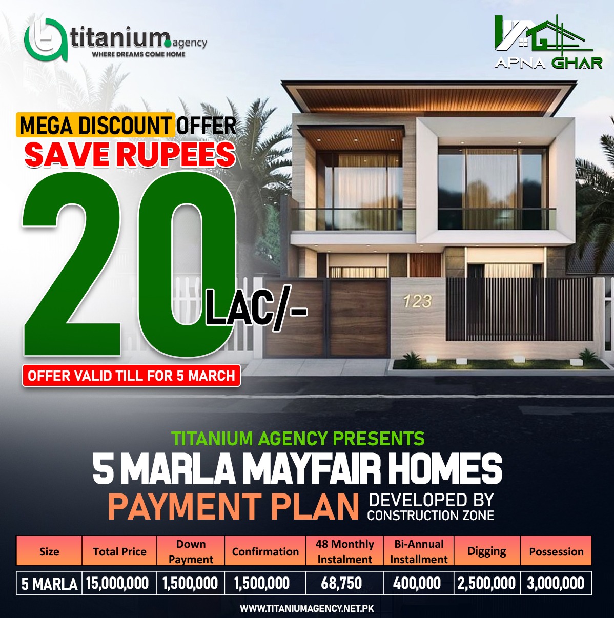 • 5 Marla Home: PKR 1,500,000